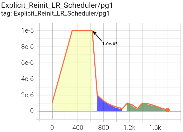 If you want your learning rates logged on the same graph for each of the scheduler configurations defined in various phases, ensure that you provide the same name in the lr_scheduler configuration for each of the defined lr schedulers. For instance, in the lr scheduler reinitialization example, we provide: