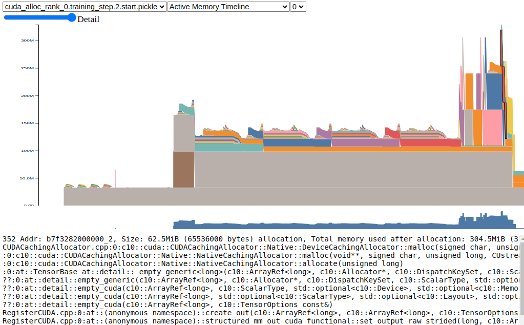 Cuda Allocator History Active Timeline for training_step iteration 2, rank 0, start snapshot¶