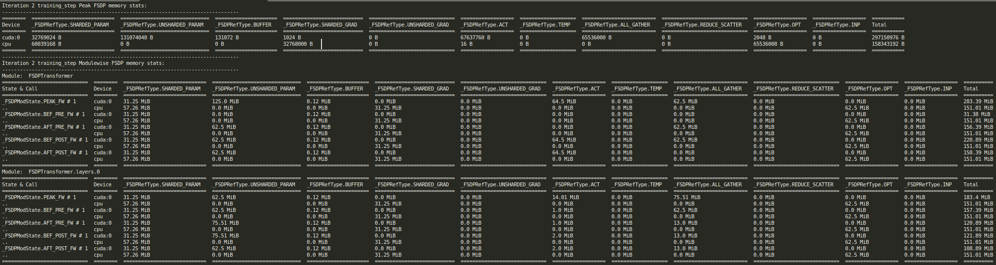 FSDP2MemTrackertracking for the collected iteration (per-rank), e.g.:./memprofiler/fsdp_mem_rank_0_training_step_2.logConsolidated memory snapshot collection entries, dumped to